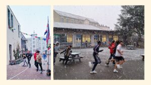 La neige s’est invitée pour le départ bravo aux courageux collégiens!