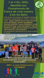 3 et 4 février 2026: 2 équipes de Massillon aux France de cross country UNSS à Aix-Les-Bains
